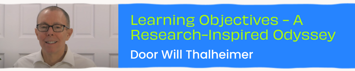 Het gebruik van leerdoelen is zo vanzelfsprekend geworden dat we de effectiviteit voor lief nemen. Niet doen! Will Thalheimer deelt de details die er toe doen en het zal je verbazen! Word een echte Learning Objective Master door deze inzichten toe te passen.